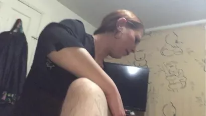 Russian redhead deepthroats a thick hog