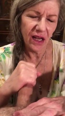 Cockhungry gilf worships and milks his monster cock