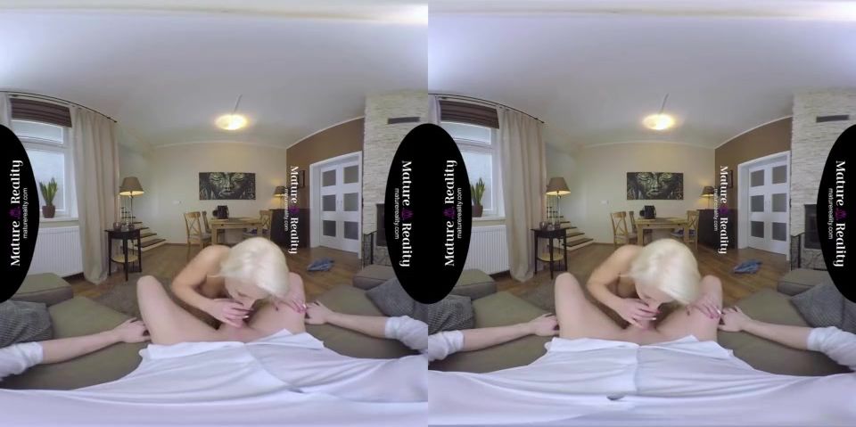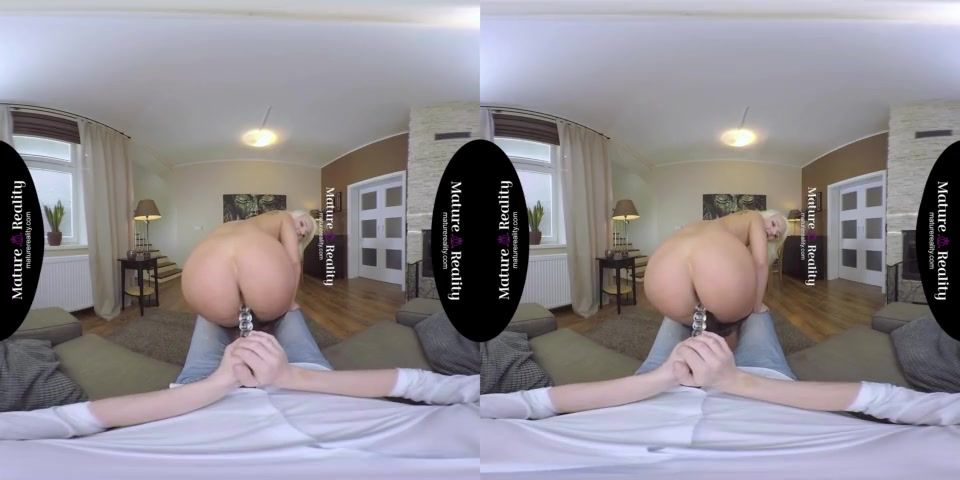 Blonde milf with huge tits rides you in VR