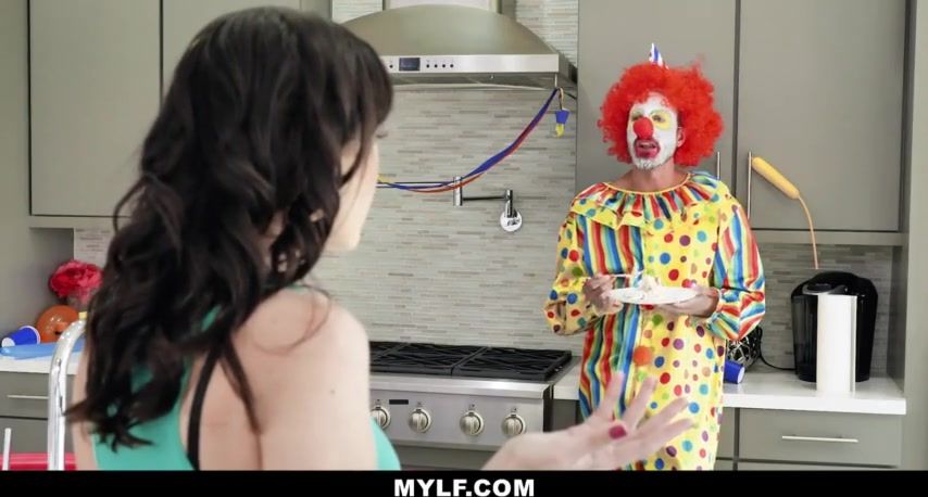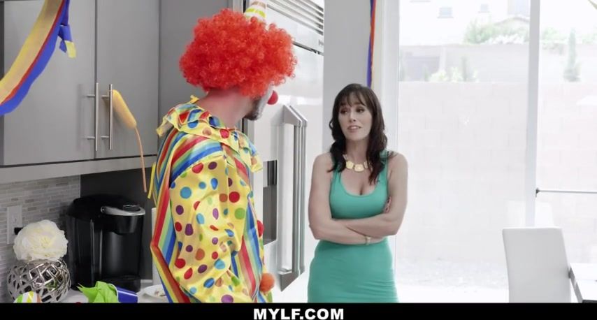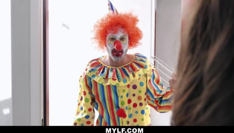 Horny milf with bangs goes down on a clown