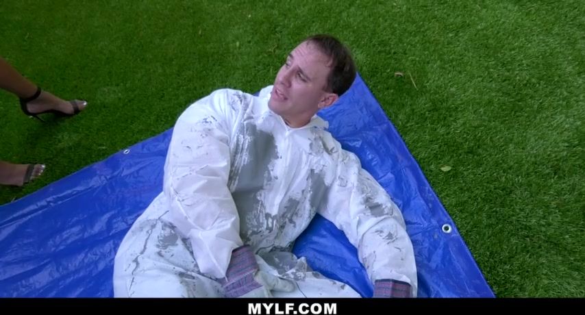 Busty neighbor Reagan Foxx gets help and a hard fuck from Logan.
