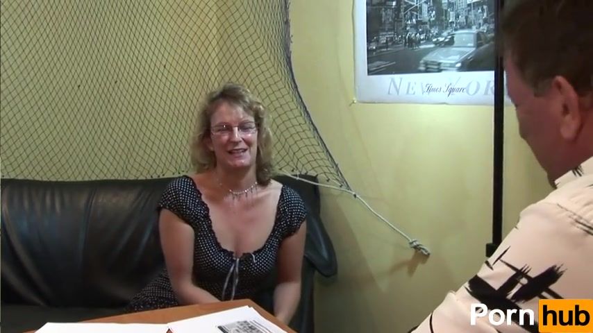 French granny with glasses double-stuffed and sprayed with cum